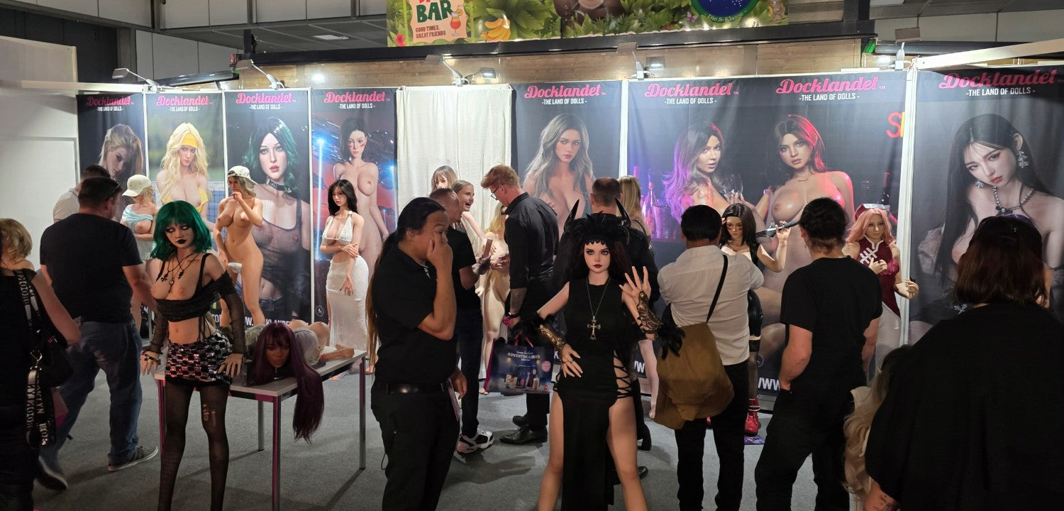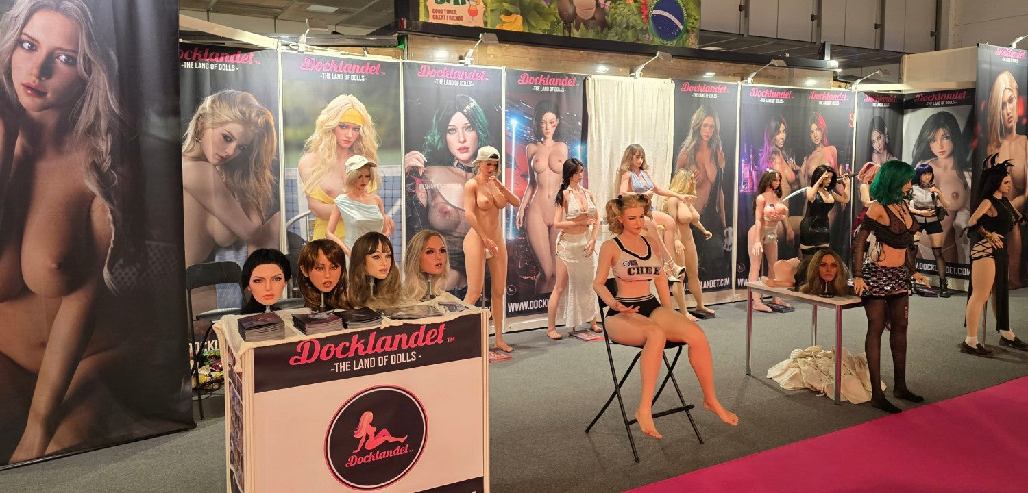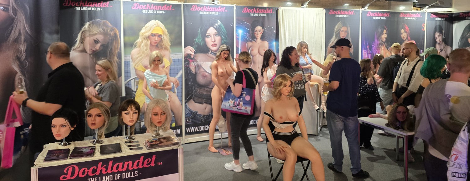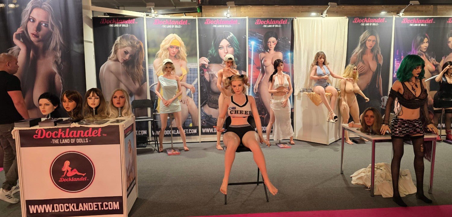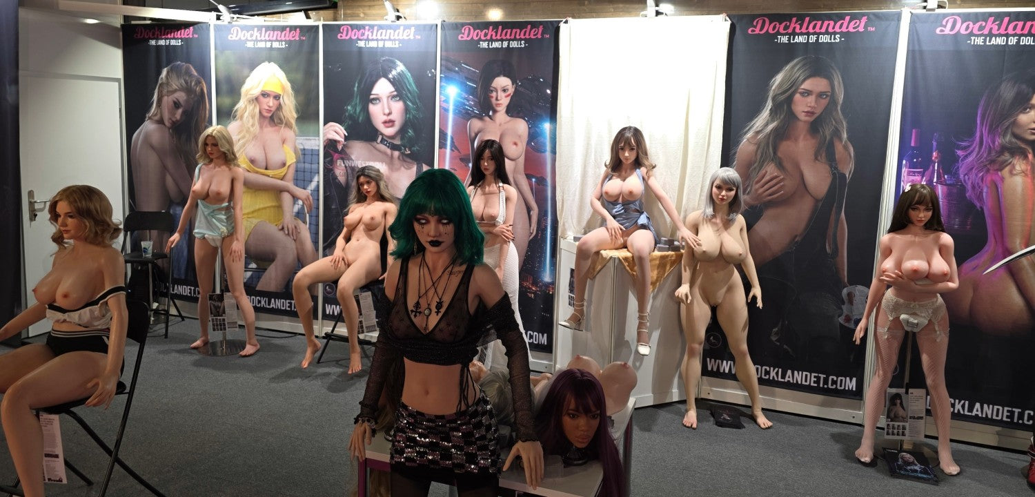 Vi på Docklandet repræsenterede nogle af vores vigtigste partnere med deres smukke dukker. Fra TOP-CYDOLL havde vi 3 fuld-silikone dukker, Isabella, Polly og Zhimin (set fra venstre mod højre). I midten har vi Tracy.B fra SE-Doll som er en S-TPE og virkelig storslået på trods af sin lave pris. Så har vi Noa fra det nye mærke LilyDoll (tæt forhold til SE-DollEn prisvenlig hybrid af høj kvalitetdukke med en kurvet krop af S-TPE-materiale og realistisk hoved af silikone. Derefter ser vi silikone-dukke "Lita.A", en eksklusiv dukke fra SE-Doll med en stil inspireret af figuren Alita. Så har vi Sakai fra Elsa Babe med de tre bryster, der altid er populære, især blandt dem, der ikke har set dukker før. Yderst til højre på standen har vi to cosplay-dukker fra FunWest Doll. "Sakura" og "Hinata" med ninjastil inspireret af den japanske serie Naruto. BEMÆRK! Cosplay betyder at efterligne en stil, og cosplay-dukker er ikke officielle licensprodukter. Lidt længere fremme på standen havde vi 3 dukker og en hel masse hoveder sat op. Irontech Doll's Eila Adams, som er lavet i samarbejde med den virkelige pornostjerne Eila Adams. Eila, også kendt som "den nøgne reporter", har tidligere besøgt messen, men i år var det kun dukkeversionen af hende, der var til stede. Godt, at vi havde dukken med til alle Eila-fans! I midten af standen ser vi Silvana (Wushi custom) fra Starpery. Yderst til højre har vi Lily med goth-stil fra FunWest Doll.