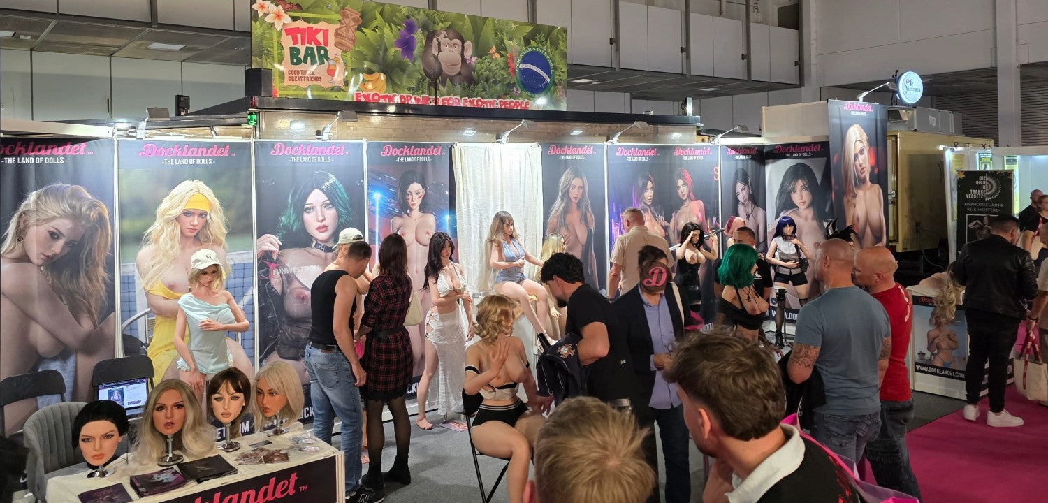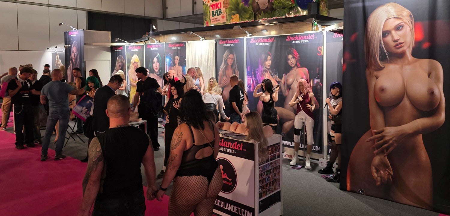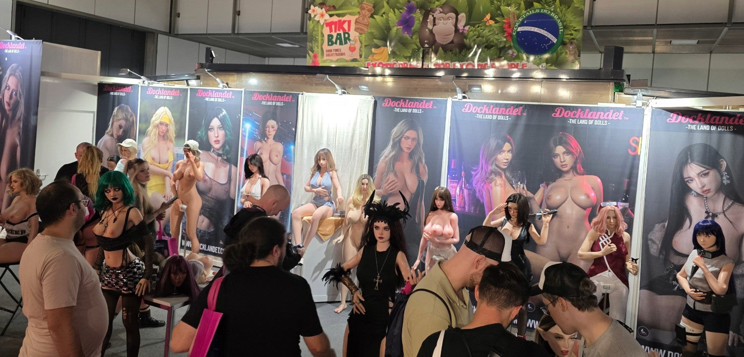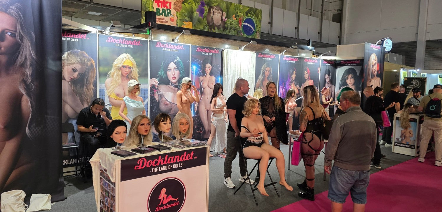 Vi på Docklandet repræsenterede nogle af vores vigtigste partnere med deres smukke dukker. Fra TOP-CYDOLL havde vi 3 fuld-silikone dukker, Isabella, Polly og Zhimin (set fra venstre mod højre). I midten har vi Tracy.B fra SE-Doll som er en S-TPE og virkelig storslået på trods af sin lave pris. Så har vi Noa fra det nye mærke LilyDoll (tæt forhold til SE-DollEn prisvenlig hybrid af høj kvalitetdukke med en kurvet krop af S-TPE-materiale og realistisk hoved af silikone. Derefter ser vi silikone-dukke "Lita.A", en eksklusiv dukke fra SE-Doll med en stil inspireret af figuren Alita. Så har vi Sakai fra Elsa Babe med de tre bryster, der altid er populære, især blandt dem, der ikke har set dukker før. Yderst til højre på standen har vi to cosplay-dukker fra FunWest Doll. "Sakura" og "Hinata" med ninjastil inspireret af den japanske serie Naruto. BEMÆRK! Cosplay betyder at efterligne en stil, og cosplay-dukker er ikke officielle licensprodukter. Lidt længere fremme på standen havde vi 3 dukker og en hel masse hoveder sat op. Irontech Doll's Eila Adams, som er lavet i samarbejde med den virkelige pornostjerne Eila Adams. Eila, også kendt som "den nøgne reporter", har tidligere besøgt messen, men i år var det kun dukkeversionen af hende, der var til stede. Godt, at vi havde dukken med til alle Eila-fans! I midten af standen ser vi Silvana (Wushi custom) fra Starpery. Yderst til højre har vi Lily med goth-stil fra FunWest Doll.