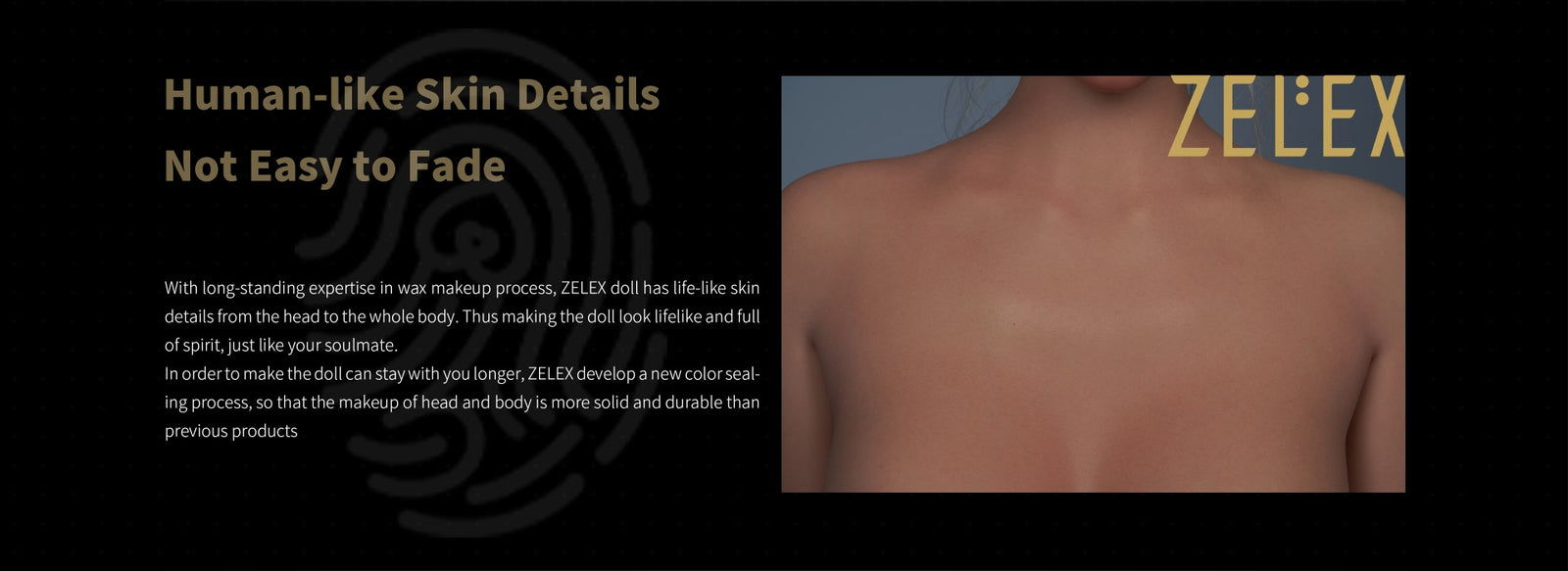 Zelex er en etableret producent af realistiske dukker af høj kvalitet, der er skabt ud fra ægte menneskelige modeller. Siden 2013 har virksomhedenZelex har arbejdet med den allernyeste teknologi inden for 3D-scanning og lerskulpturering for at gengive de virkelige modellers udseende så nøjagtigt som muligt. Med en ekstra høj detaljeringsgrad og et unikt udseende kan du opleve dukker med personlighed og karisma, der får dem til at føles ekstra levende. Ved at bruge materialer af højeste kvalitet og helt sikre fremstillingsmetoder genskabes en blød og levende tekstur ved kontakt.